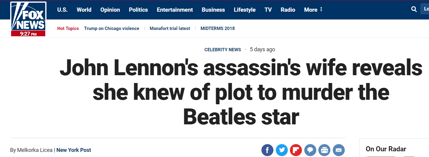 Fox News calls Mark David Chapman “John Lennon’s Assassin” — Come on, folks — if Fox News gets this right, the rest of you have no possible excuse.