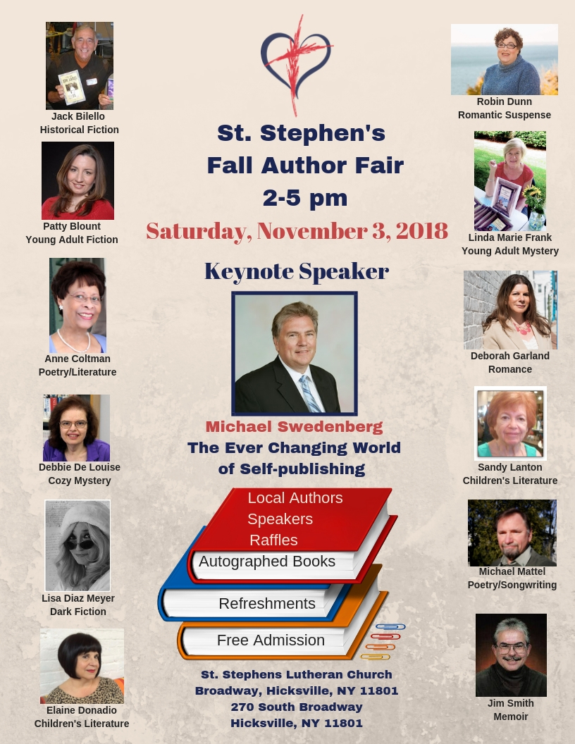 I’ll be at St. Stephens in Hicksville, NY for their Fall Author Fair, on Saturday, 11/3. Come by, grab a book, ask the panel a question!